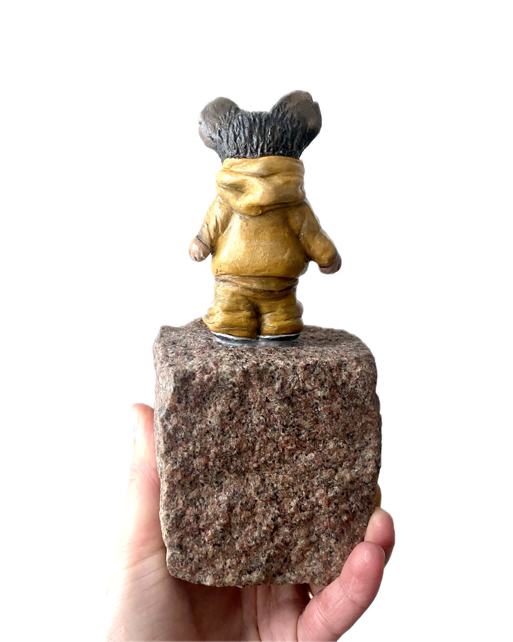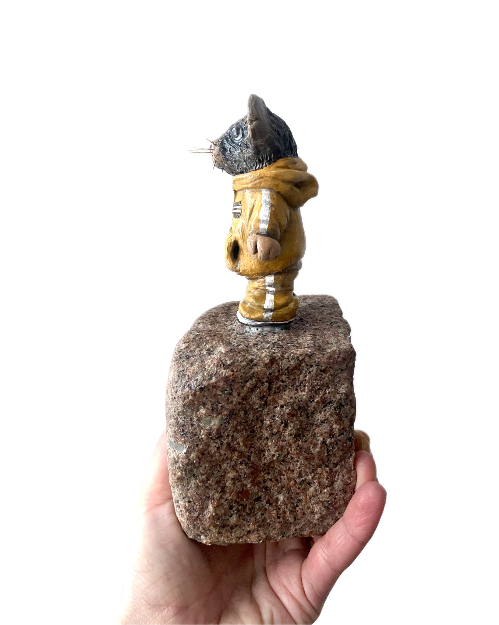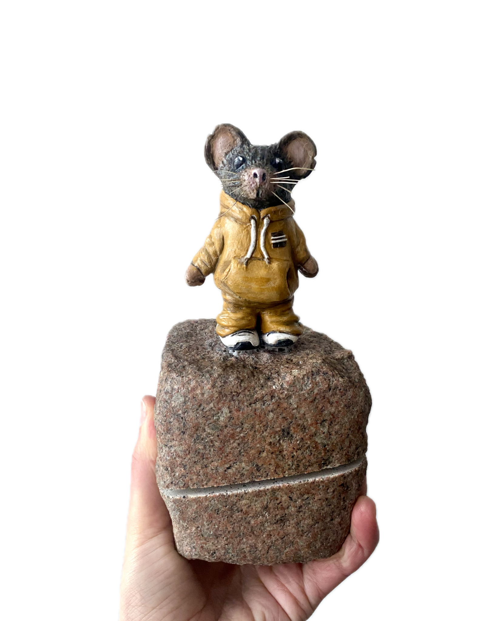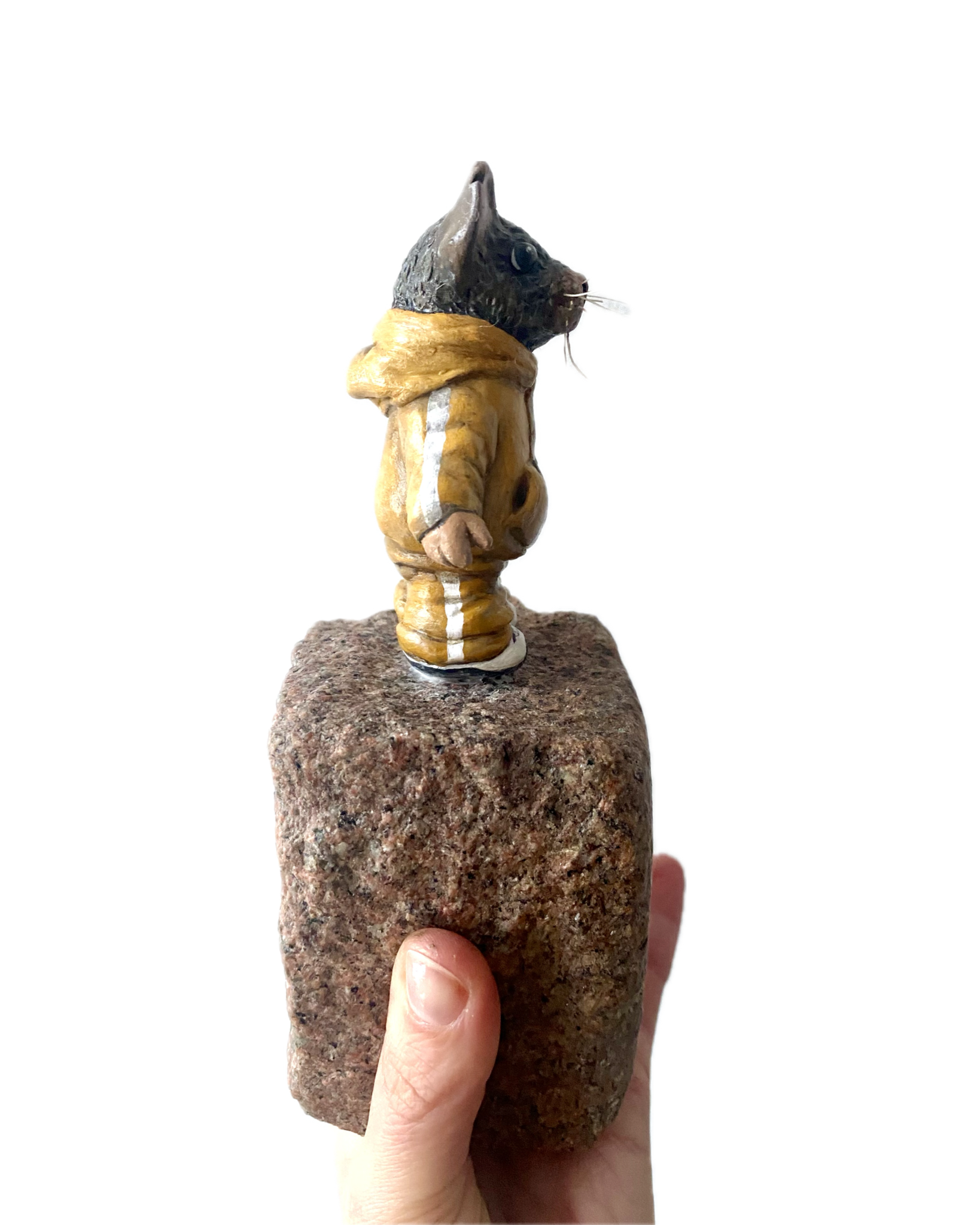 "Pipette" är en handgjord originalskulptur föreställande karaktären Råttan Pipette, skapad av lufttorkande lera, som står på en upphittad kullersten. Verket är en del av mitt mer experimentella konstnärskap där naturmaterial och återbruk möts. En liten skulptur med både tyngd och karaktär, framtagen i blandteknik (mixed media).