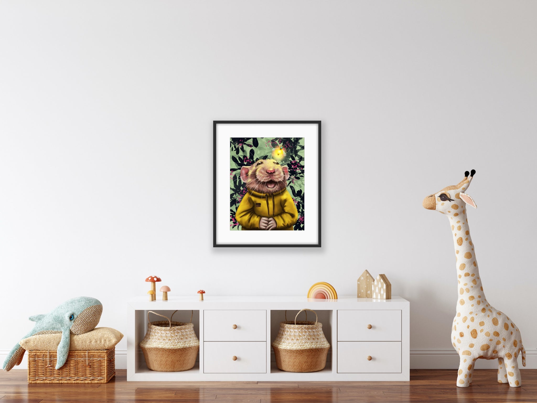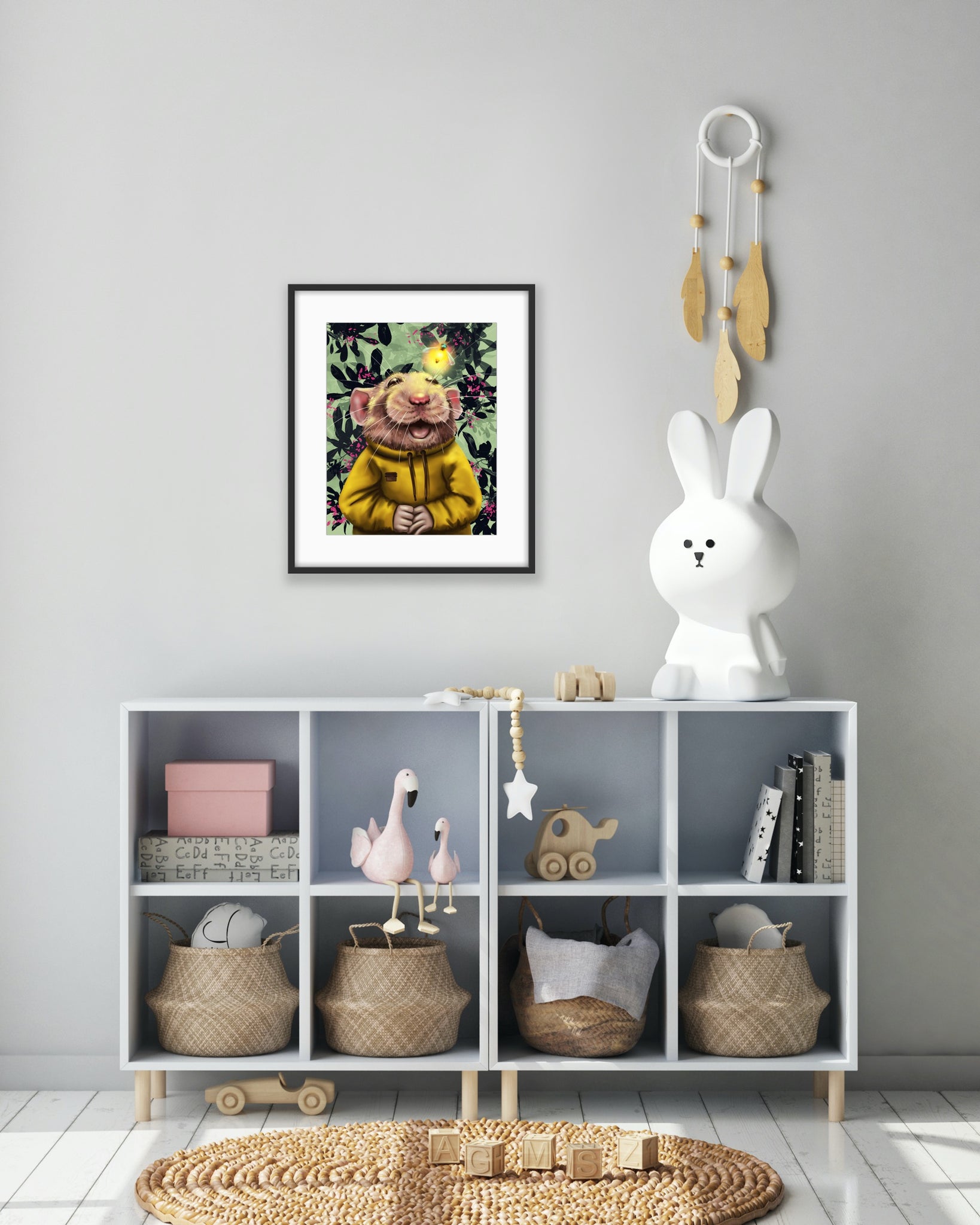 Det här konstverket passar särskilt fint i ett barnrum, lugn vrå eller ett kreativt rum där leken får ta plats tillsammans med känslan av trygghet – eller som en kärleksfull present till någon som ser det stora i det lilla.