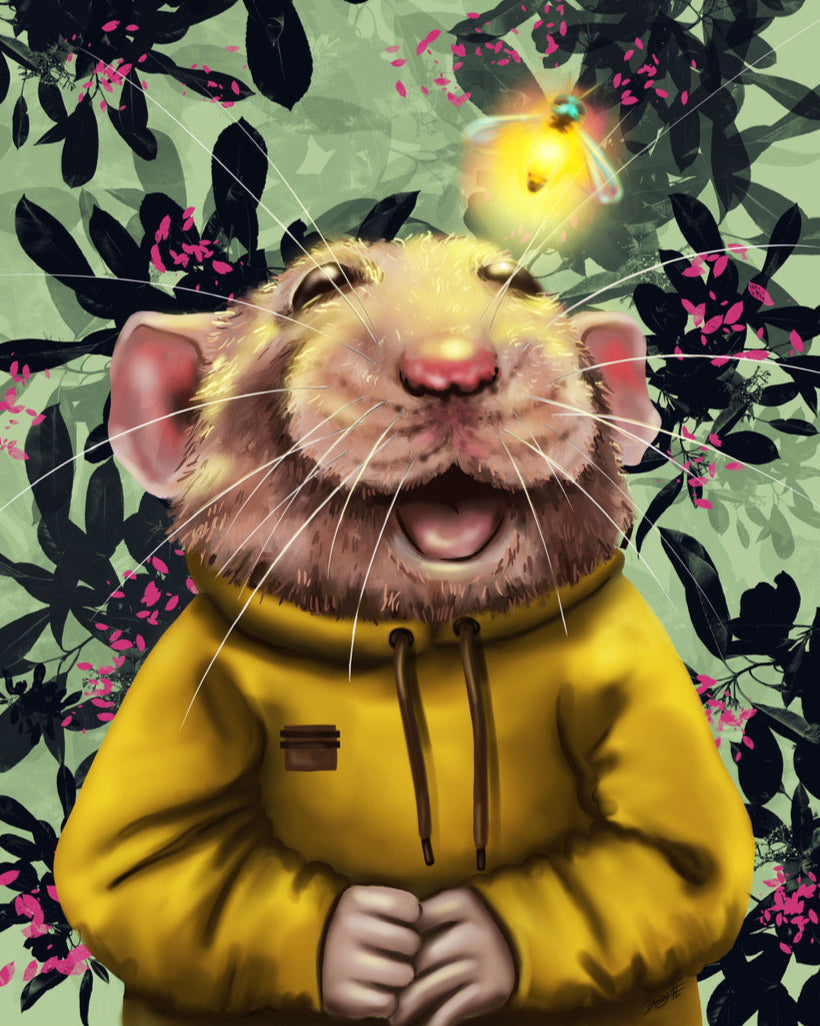 "Råttan Pipette" är den yngsta i min Förortsfabel-värld – en liten upptäckare med stor kärlek till naturen och allt som kryper. Han älskar att leka utomhus, samla småkryp och springa barfota i gräset, men världen kan också kännas stor ibland.